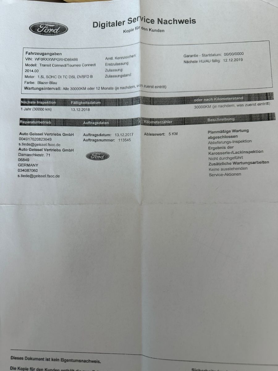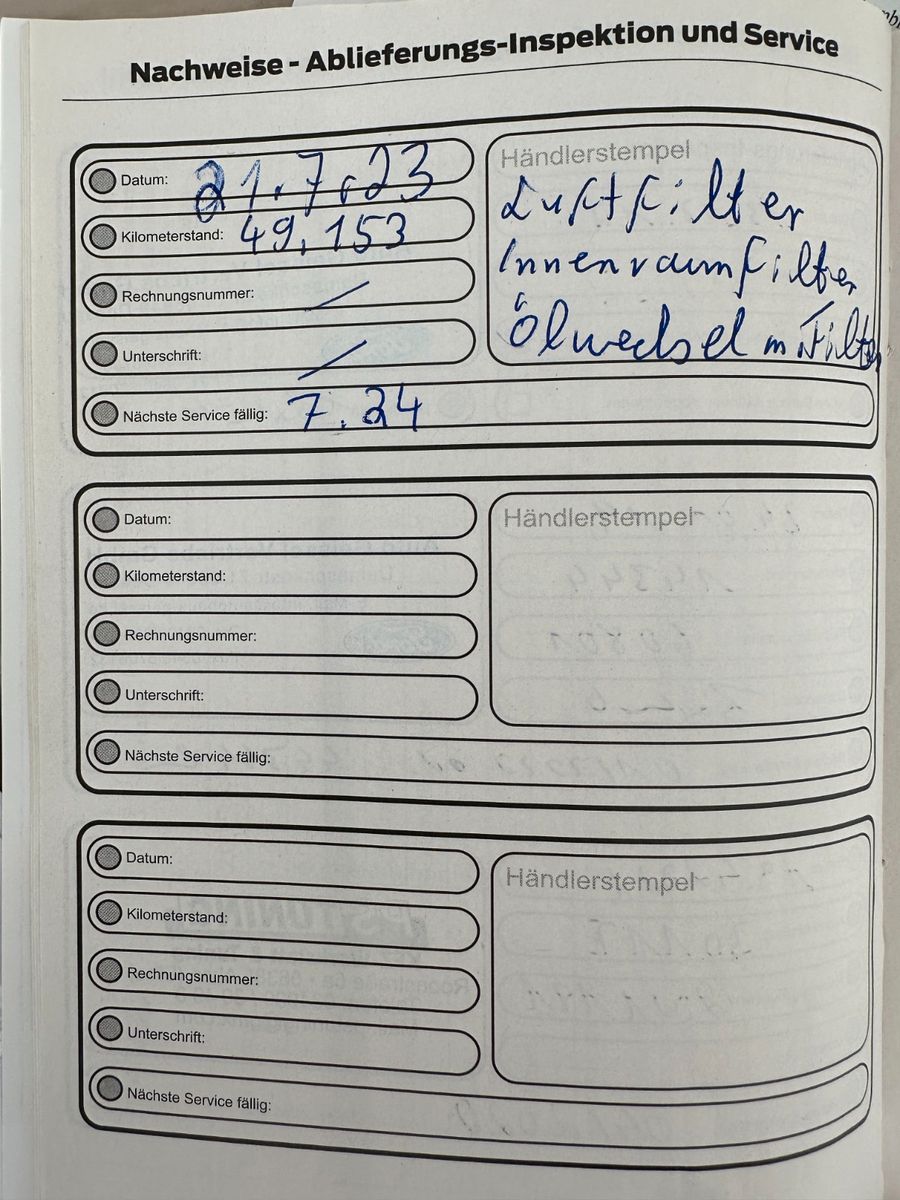letzte Inspektion bei 49153 km 07.2023