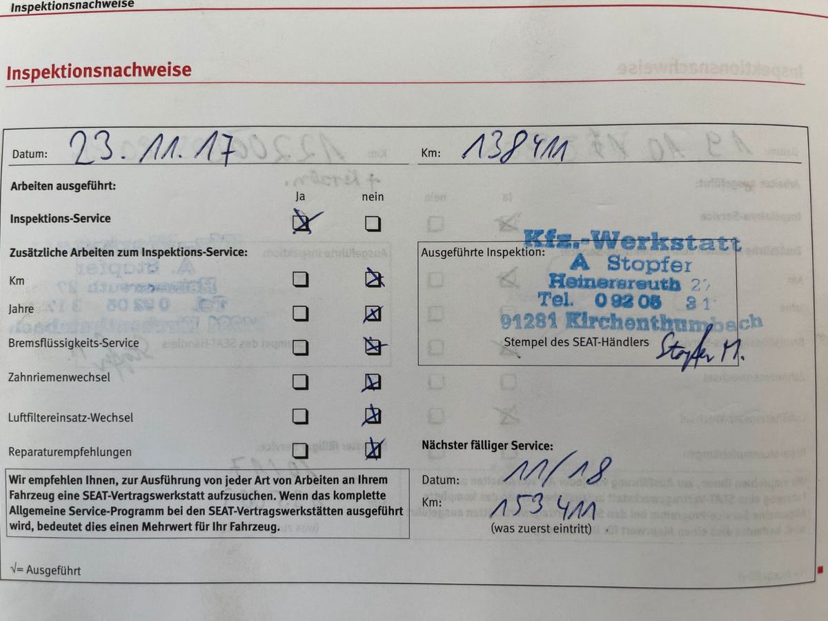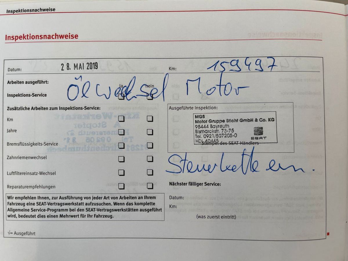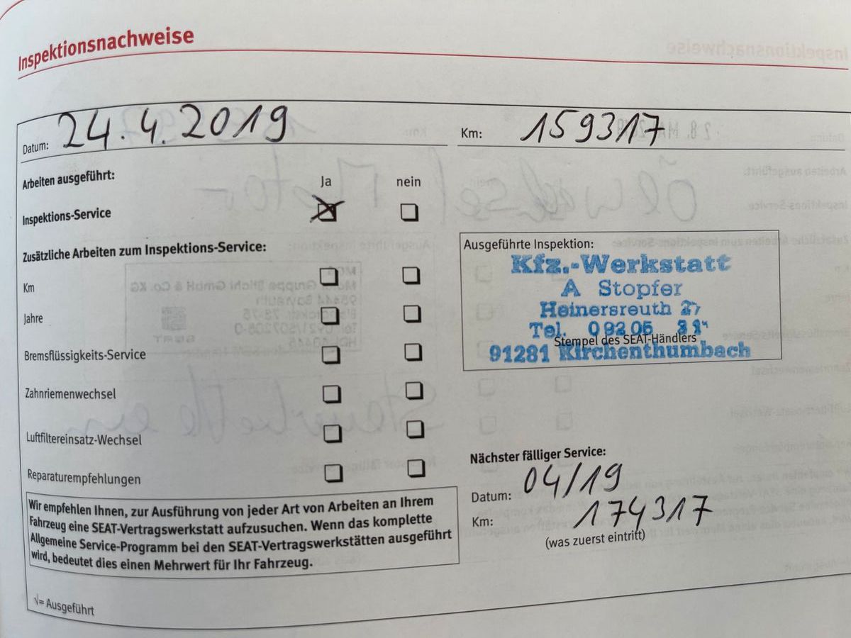 Letzte Inspektion bei 159497 KM 05.2019