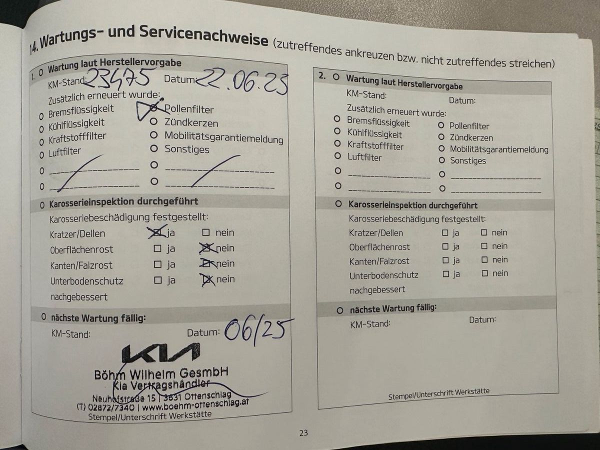 letzte Inspektion bei 23475 km 106.2023