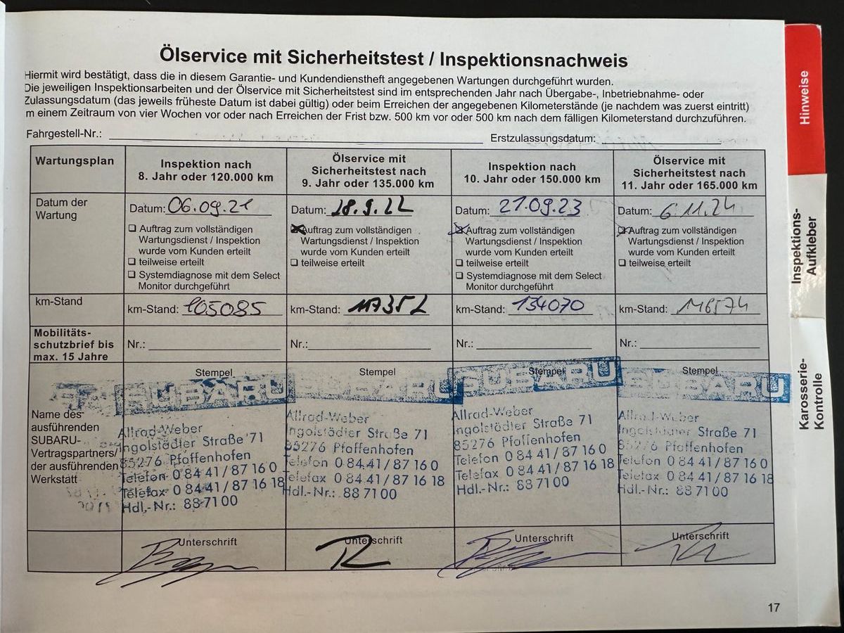letzter Service bei 137488 km 07.2025