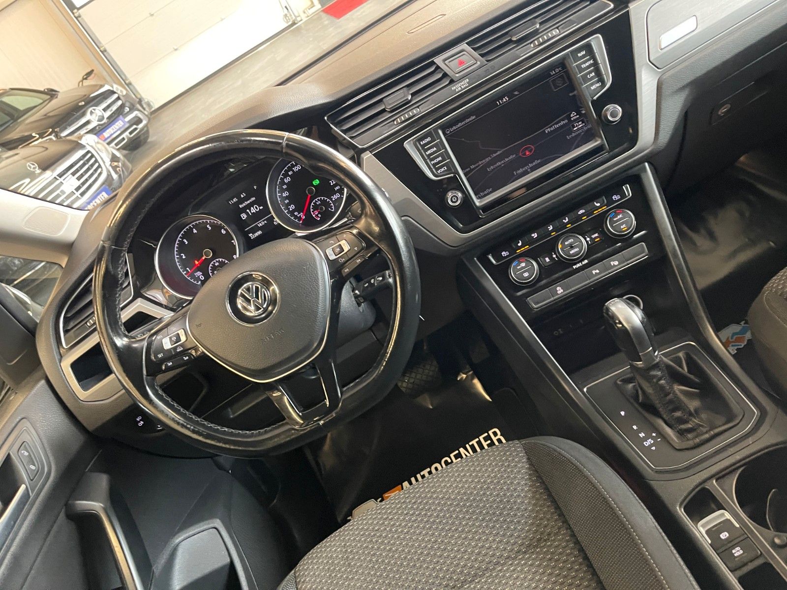 3.Sitzreihe mit Einzelsitzen (2 Sitzplätze), App-Connect, Audiosystem Composition Media (Touchscreen, Radio/CD-Player, MP3, Bluetooth), Fahrassistenz-Paket, Fahrassistenz-System: Parklenkassistent (Park Assist), Family-Paket, Gepäckraum-Abtrennung (Netztrennwand), Heckleuchten LED, Kindersitze (2) integriert - 2.Sitzreihe, links/rechts, Klimaanlage Climatronic 3-Zonen, Lenkrad (Leder) mit Multifunktion und Schaltfunktion, LM-Felgen 6,5x17 (Vallelunga, schwarz), Metallic-Lackierung, Mobile Online Dienste Car-Net, Navigationsmodul Discover Media (für Audiosystem), Reifendruck-Kontrollsystem, Seitenairbag hinten, Verglasung hinten abgedunkelt (65 %)