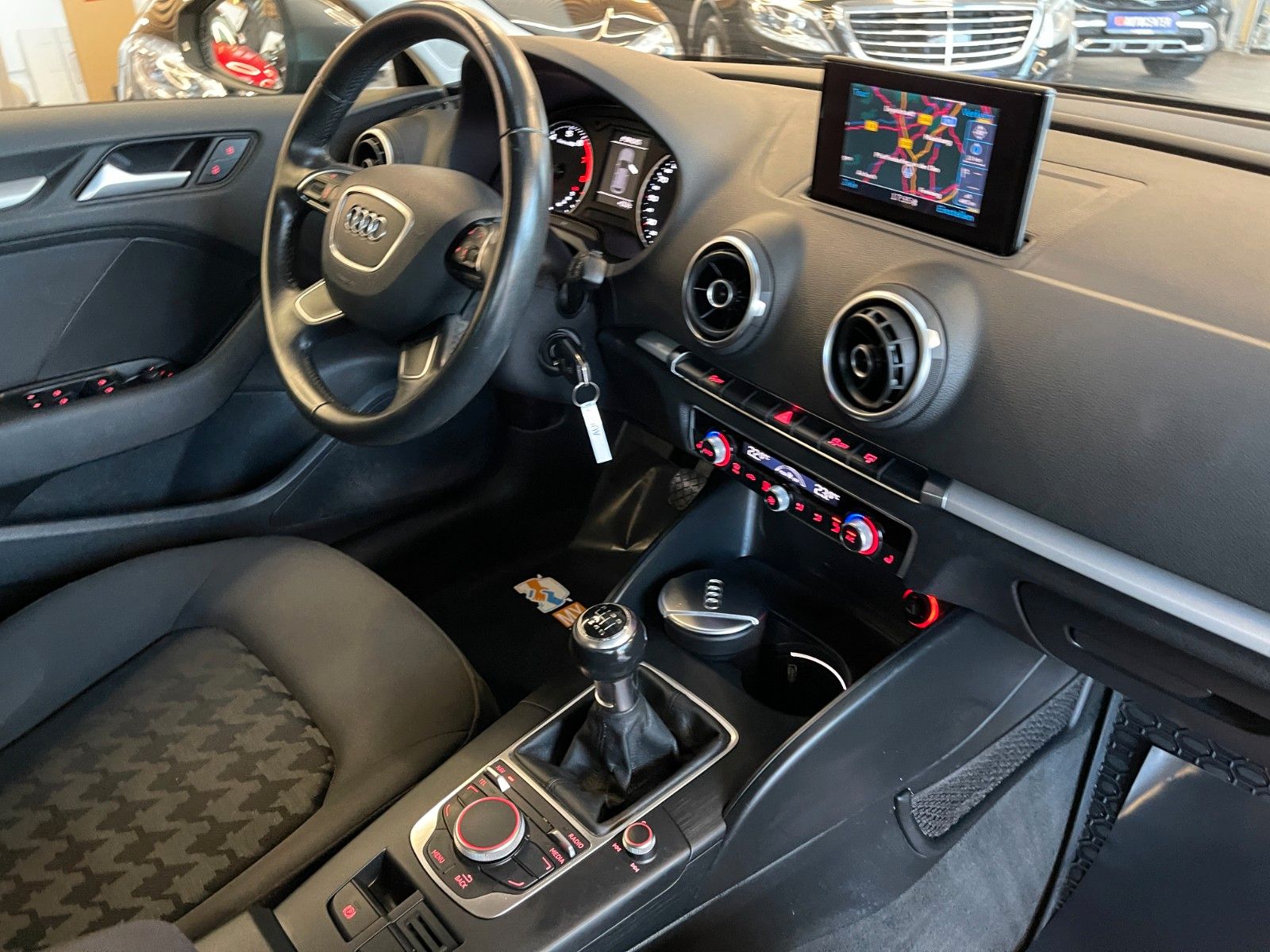 Ablage- und Gepäckraum-Paket, Außenspiegel elektr. verstell- und heizbar, beide, Dachhimmel Stoff, schwarz, Dachreling (Aluminium), Einparkhilfe hinten (APS), Fahrassistenz-System: Anfahr-Assistent (hold assist), Fahrer-Informations-System (FIS), Isofix-Aufnahmen für Kindersitz an Beifahrersitz, Komfort-Klimaautomatik 2-Zonen, Licht-Paket, LM-Felgen 6,5x16 (10-Speichen), Metallic-Lackierung, Multi-Media-Interface MMI Basic / MMI Radio, Navigations-Paket, Sitzheizung vorn, Sound-System DSP / Audi Sound-System, Xenon-Scheinwerfer Plus (Abblend- und Fernlicht)