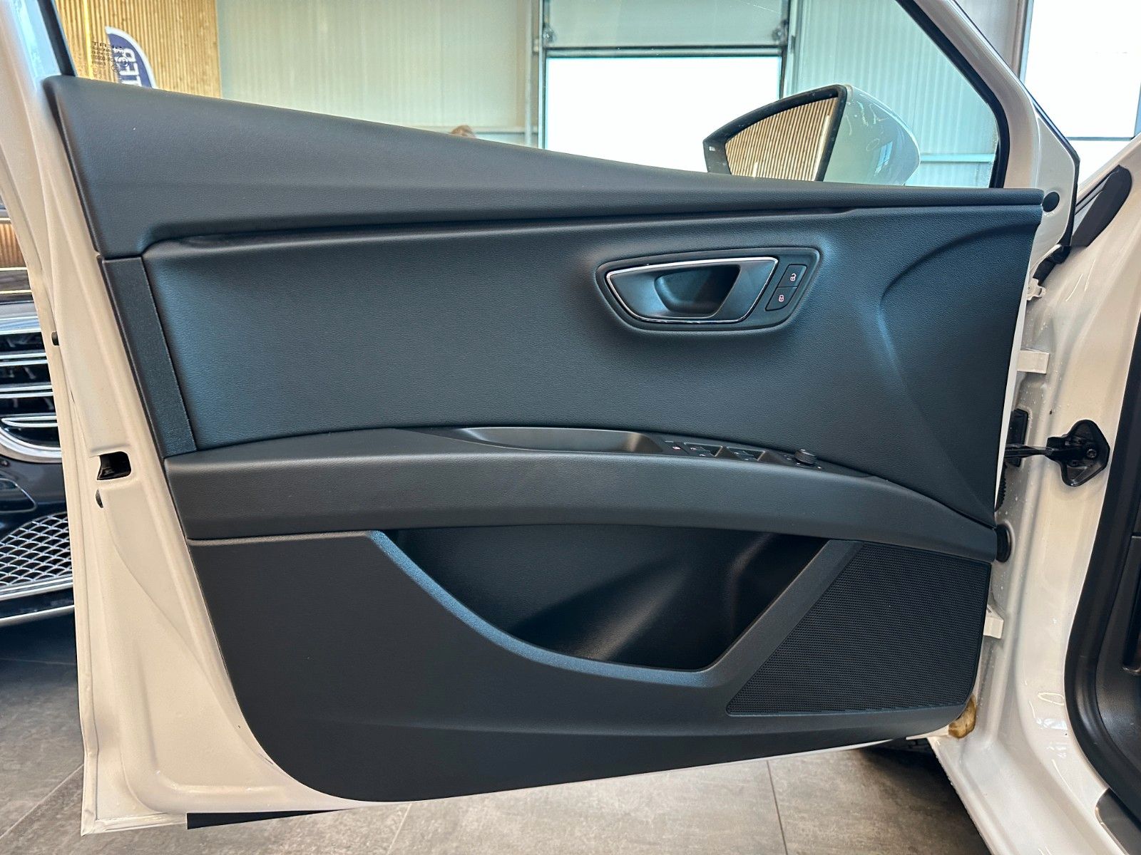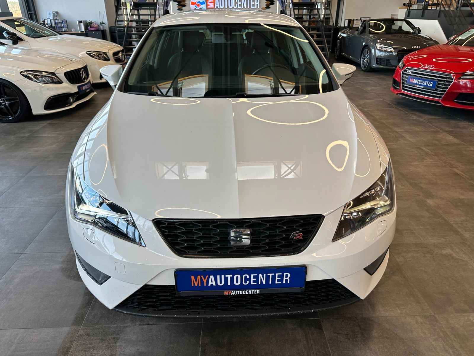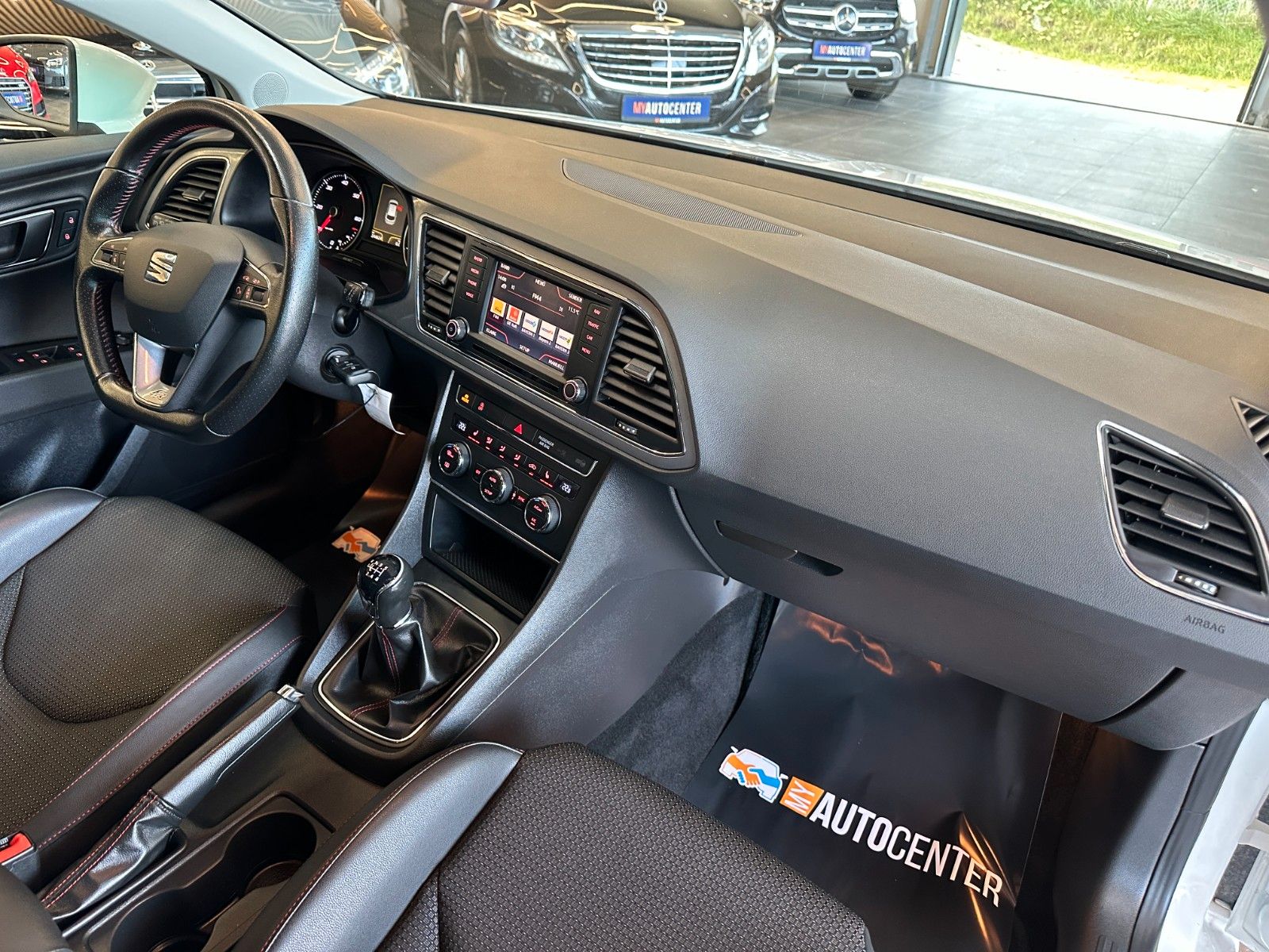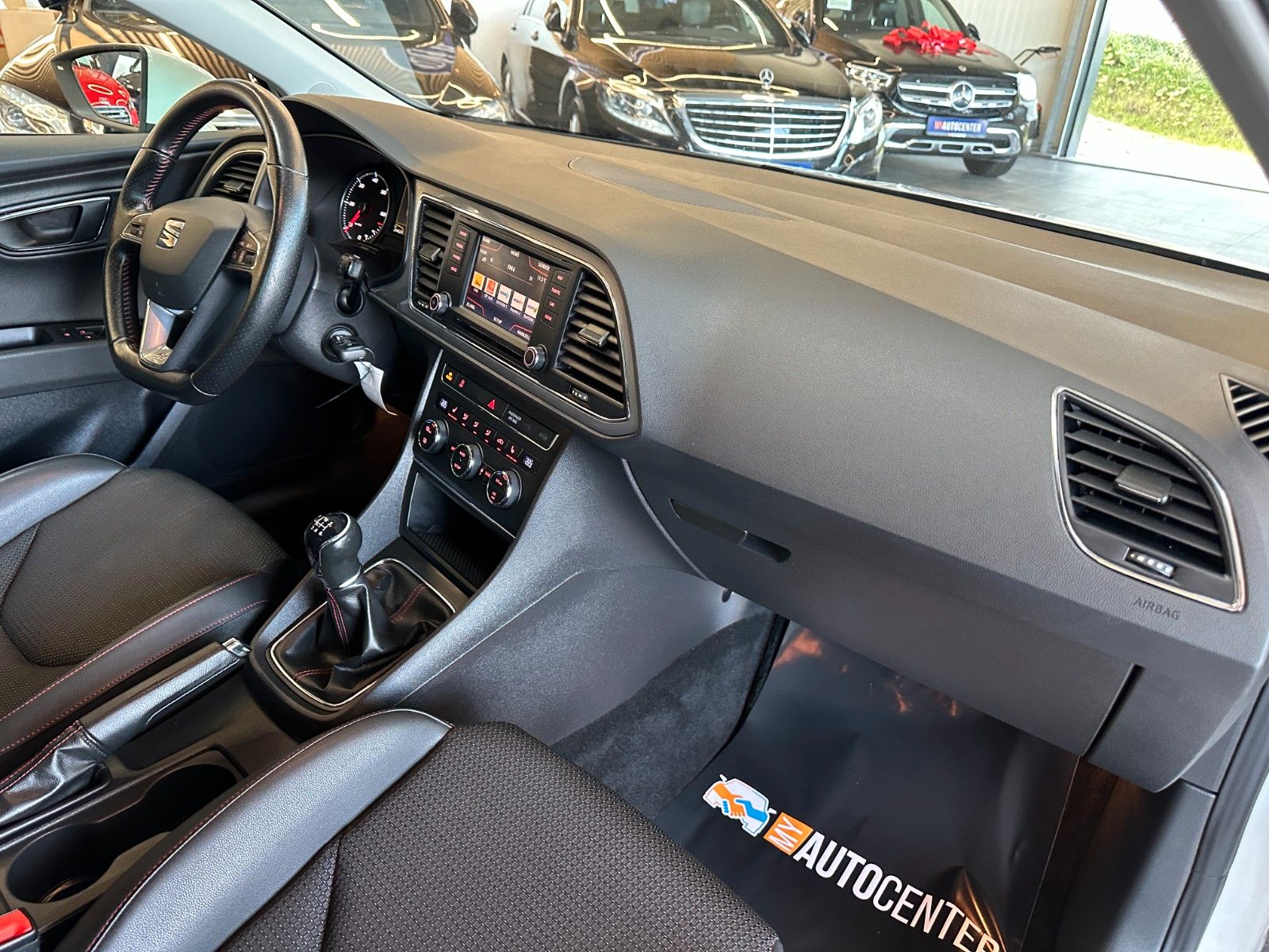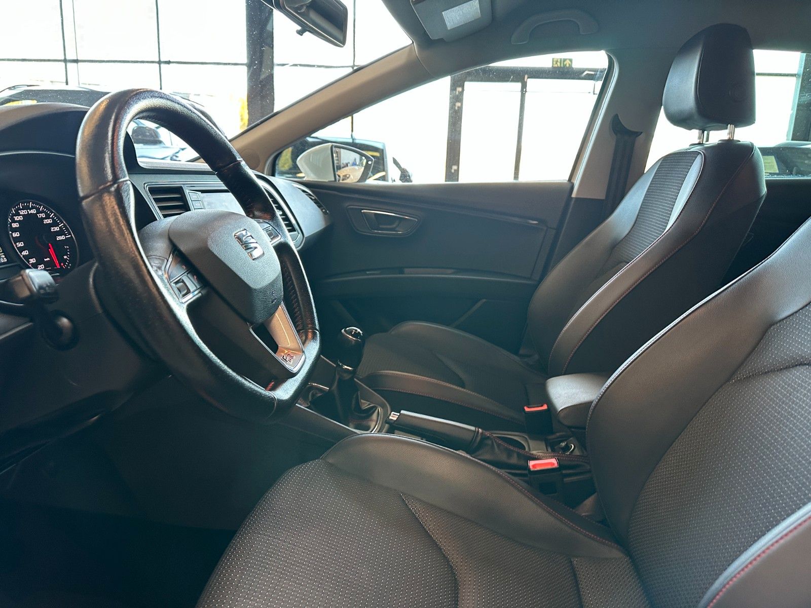 8 Lautsprecher, Ablagetasche an Vordersitzlehnen, Airbag Beifahrerseite abschaltbar, Airbag Fahrer-/Beifahrerseite, Antriebs-Schlupfregelung (ASR), Außenspiegel elektr. anklappbar, Außenspiegel elektr. verstell-, heiz- und anklappbar, beide, Außenspiegel mit Spiegelabsenkung, rechts, Außenspiegel und Türgriffe außen in Wagenfarbe, Außentemperaturanzeige, Blinkleuchten LED in Außenspiegel integriert, Bordcomputer, Bremsassistent, Elektron. Differentialsperre (EDS), Fahrassistenz-System: Berganfahr-Assistent (Hill-Holder), Fahrassistenz-System: Berganfahr-Assistent und Elektron. Differentialsperre, Fahrassistenz-System: Fahrprofilauswahl (SEAT Drive Profile), Fensterheber elektrisch hinten, Handschuhfach beleuchtet, Heckleuchten LED, Innenausstattung: Chrom-Applikationen, Isofix-Aufnahmen für Kindersitz, Karosserie: 5-türig, Klimaanlage Climatronic 2-Zonen, Knieairbag Fahrerseite, Kopf-Airbag-System, Kopfstützen hinten (3-fach), Kopfstützen vorn verstellbar, Lendenwirbelstütze Sitz vorn links, verstellbar, Lendenwirbelstütze Sitz vorn rechts, verstellbar, Lenkrad (Sport/Leder), Mittelkonsole vorn mit Mittelarmlehne, Becherhalter, Ablagebox und Luftausströmer hinten, Modellvariante CO2-optimiert (Ecomotive), Motor 2,0 Ltr. - 110 kW TDI, Reifenkontroll-Anzeige, Rücksitzlehne geteilt/klappbar (1/3-2/3), Schadstoffarm nach Abgasnorm Euro 5, Schalt-/Wählhebelgriff Leder, Seitenairbag, Seitenscheiben hinten und Heckscheibe abgedunkelt, Sitz vorn links höhenverstellbar, Sitz vorn rechts höhenverstellbar, Sonnenblende links mit Spiegel (beleuchtet), Sonnenblende rechts mit Spiegel (beleuchtet), Sport-Fahrwerk FR / Cupra, Sportsitze vorn, Sprachsteuerungs-System, Stau-/Ablagefach unter Sitze vorn, Steckdose (12V-Anschluß) vorn, Stoßfänger lackiert, Wärmeschutzverglasung