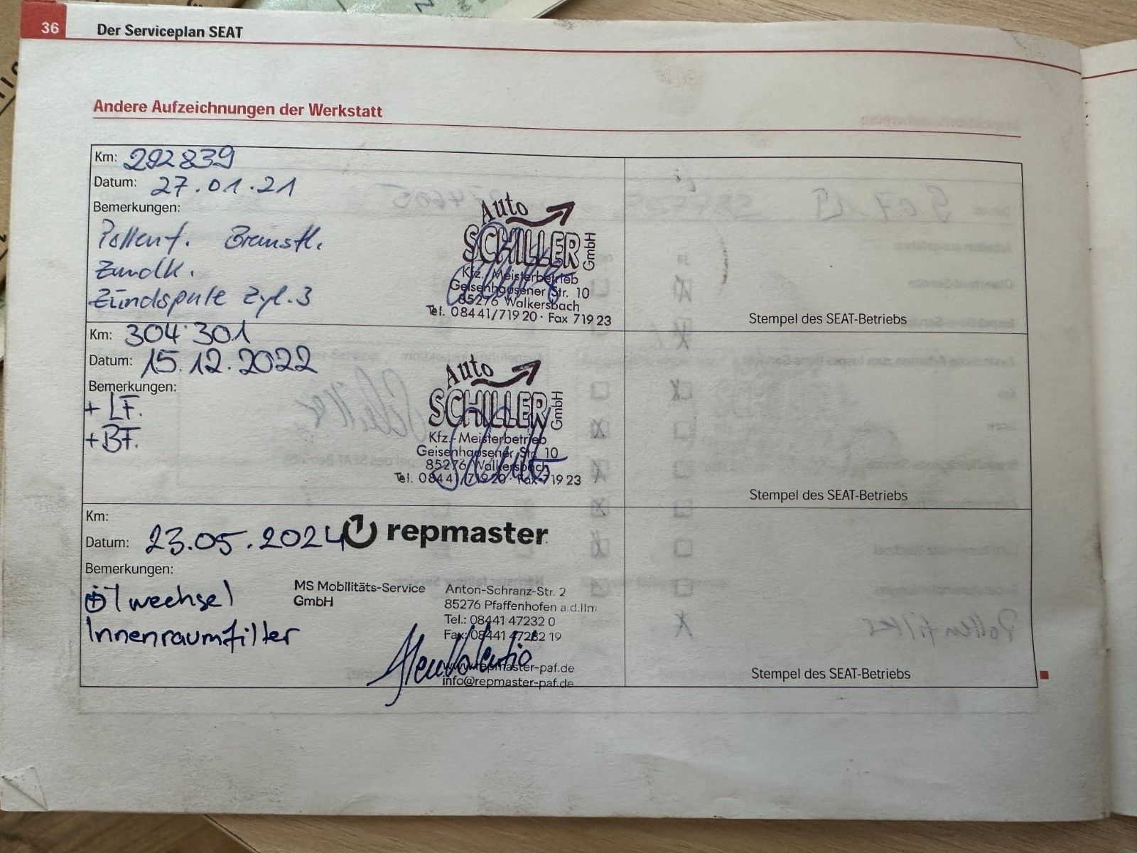 letzte Inspektion bei 319081 KM 05.2024