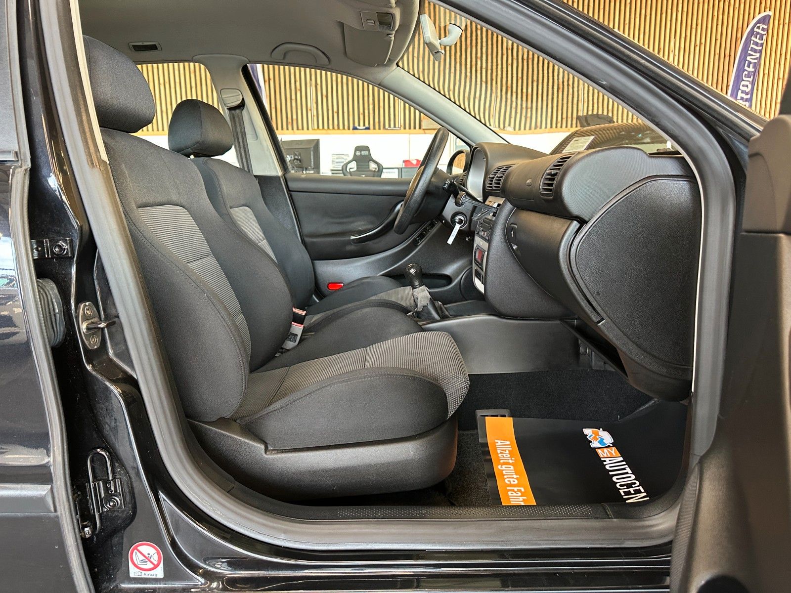 3. Bremsleuchte, Airbag Beifahrerseite, Airbag Fahrerseite, Armaturentafel gepolstert, Audiosystem Aura CD, Außenspiegel asphärisch, links, Außentemperaturanzeige, Bordcomputer, Dachantenne, Dachspoiler, Drehzahlmesser, Elektrik-Paket, Gurtstraffer, Heckscheibe heizbar, Heckscheibenwischer, Karosserie: 5-türig, Klimaautomatik, Kopfstützen hinten, Kopfstützen vorn verstellbar, Leuchtweitenregelung, LM-Felgen, Motor 1,6 Ltr. - 77 kW 16V, Reserverad in Fahrbereifung, Seitenairbag, Sitz vorn links höhenverstellbar, Sonnenblende links mit Spiegel (beleuchtet), Sportsitze, Verglasung getönt----
