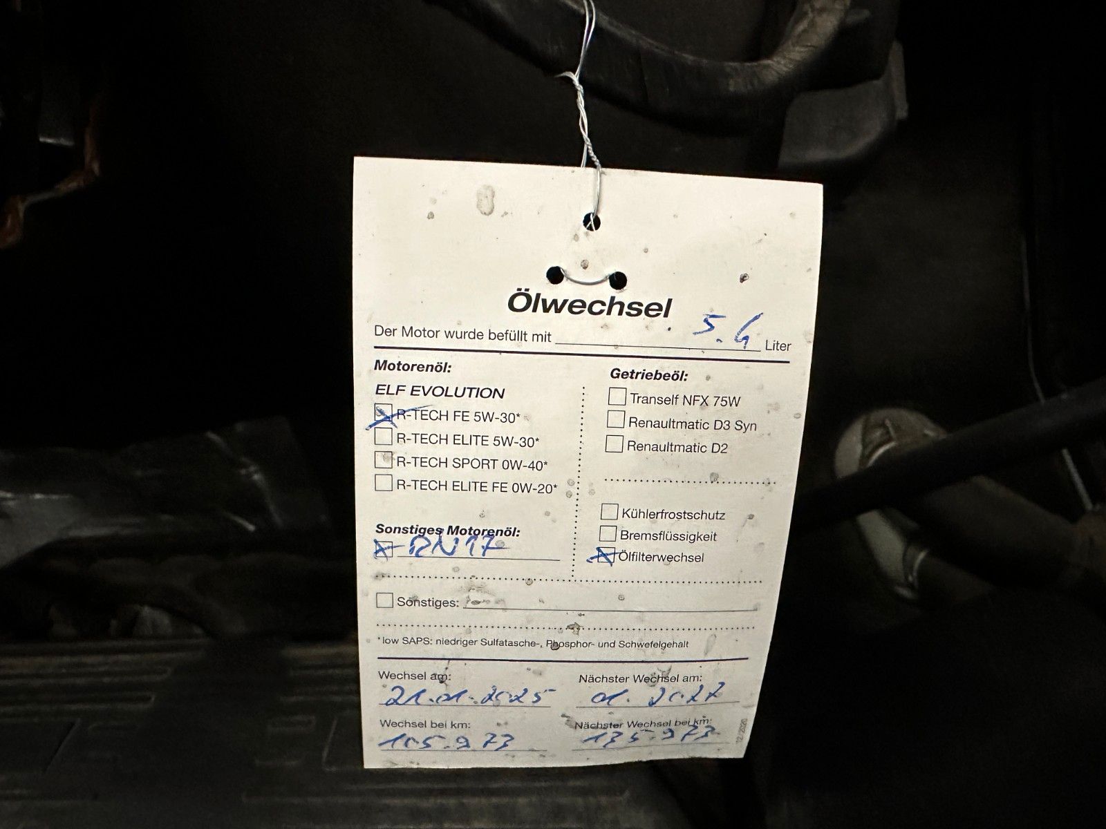 Letzter Service bei 105973 km 01.2025
