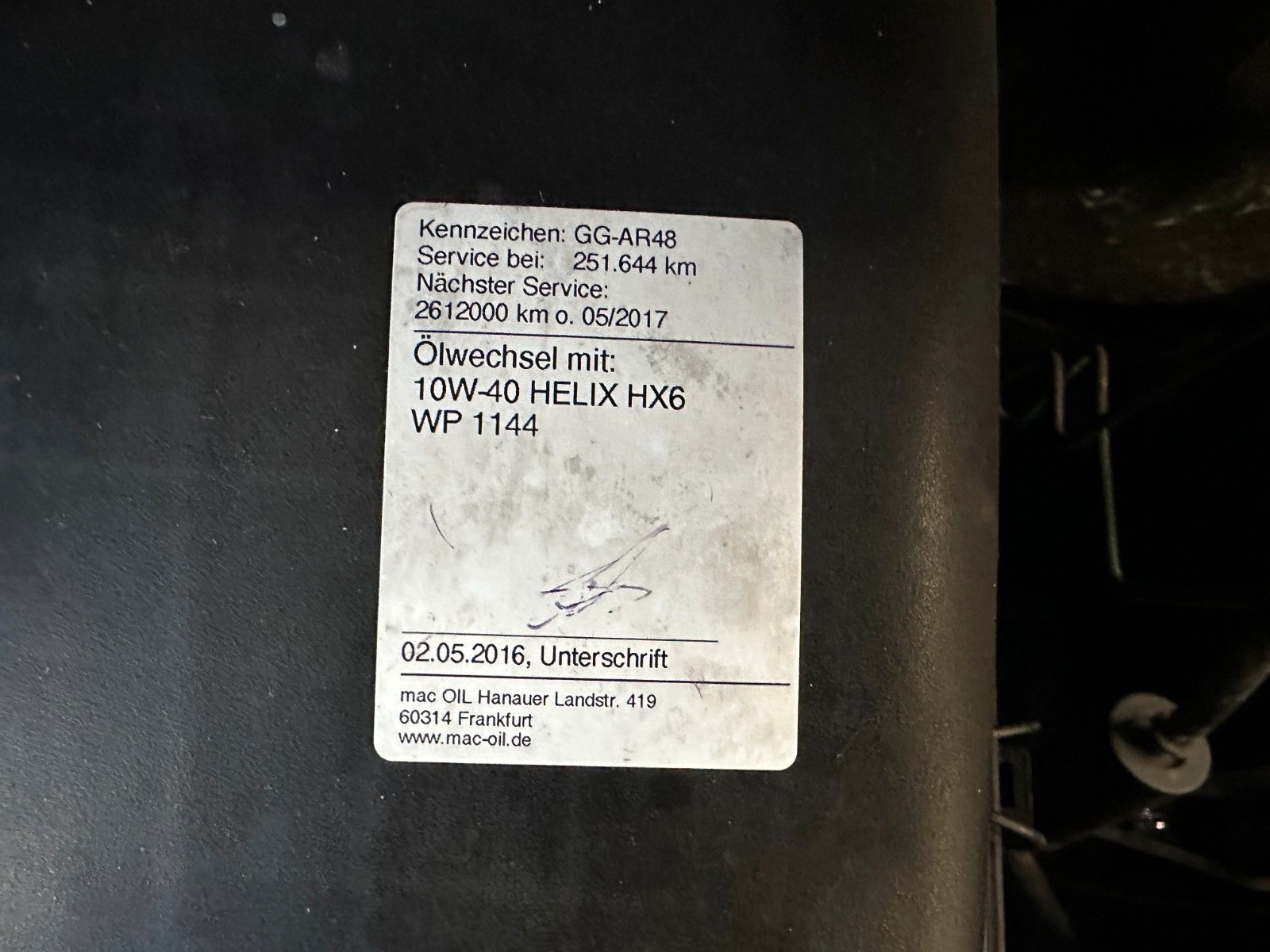 Letzter Service bei 251644 km 05.2016