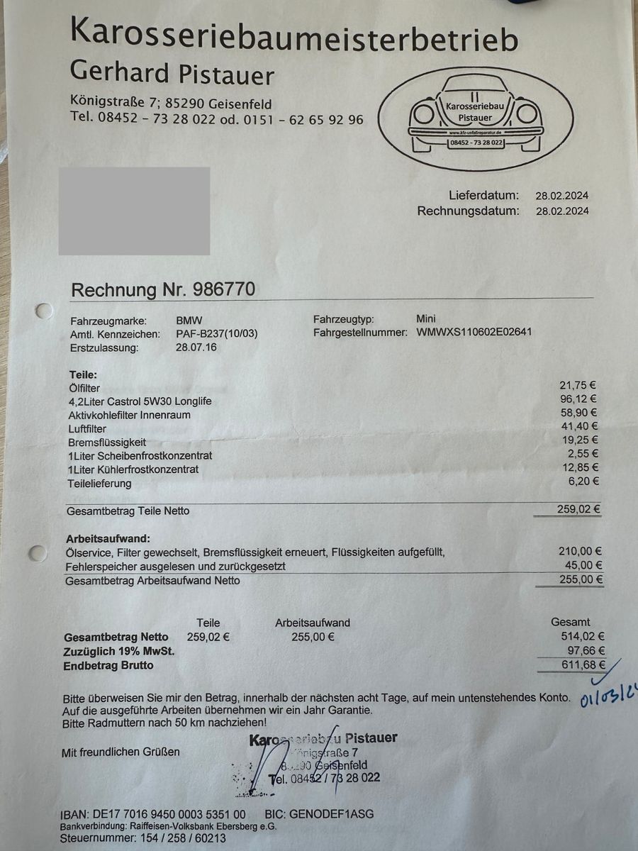 letzte Inspektion bei 75000 KM 02.2024