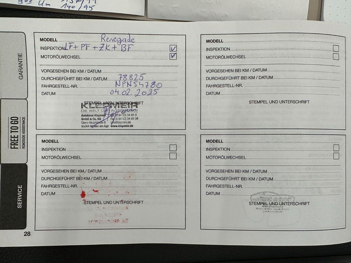 Letzter Service bei 78825 km 02.2025