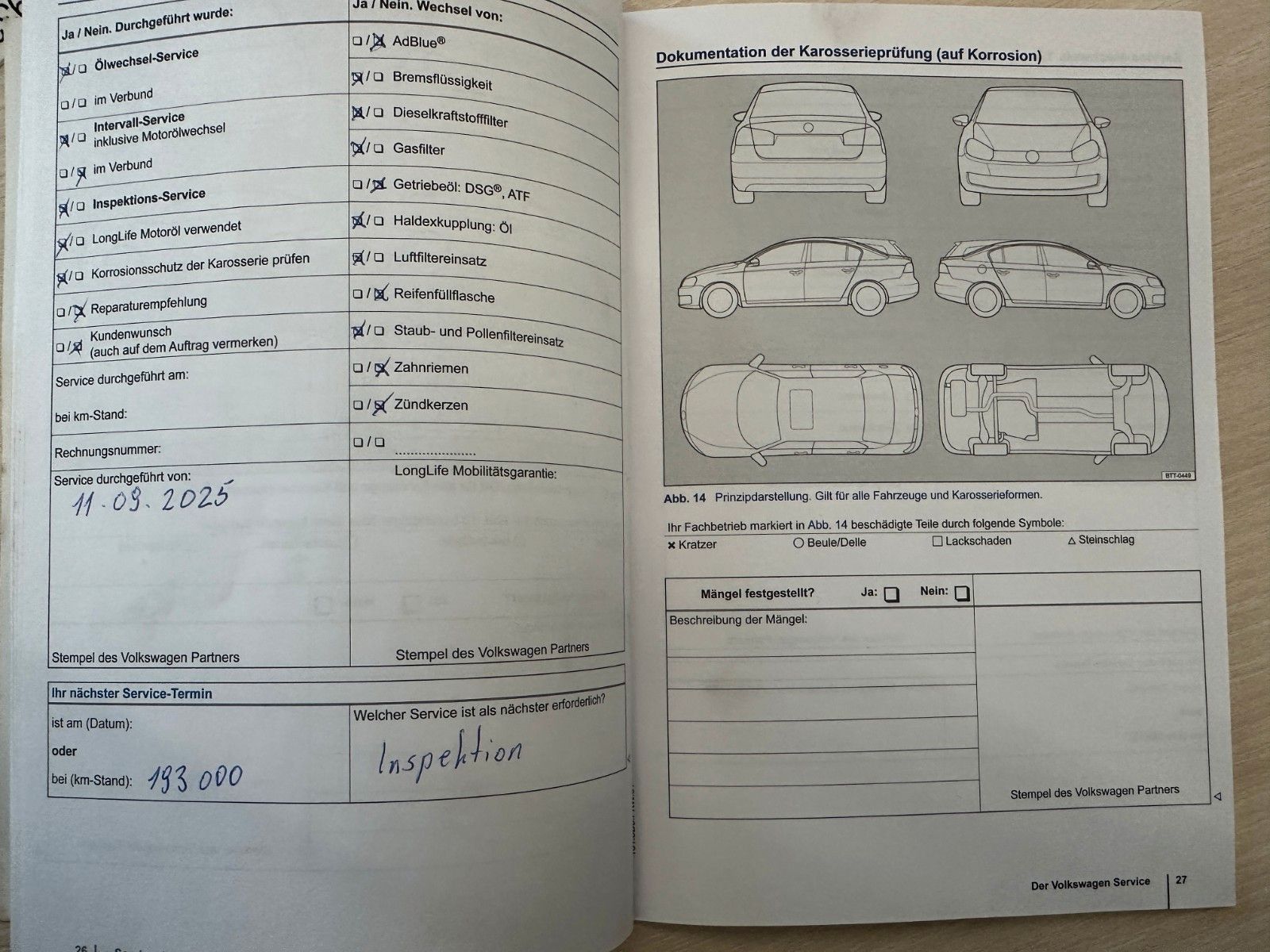 letzte Inspektion bei 177815 KM 09.2025
