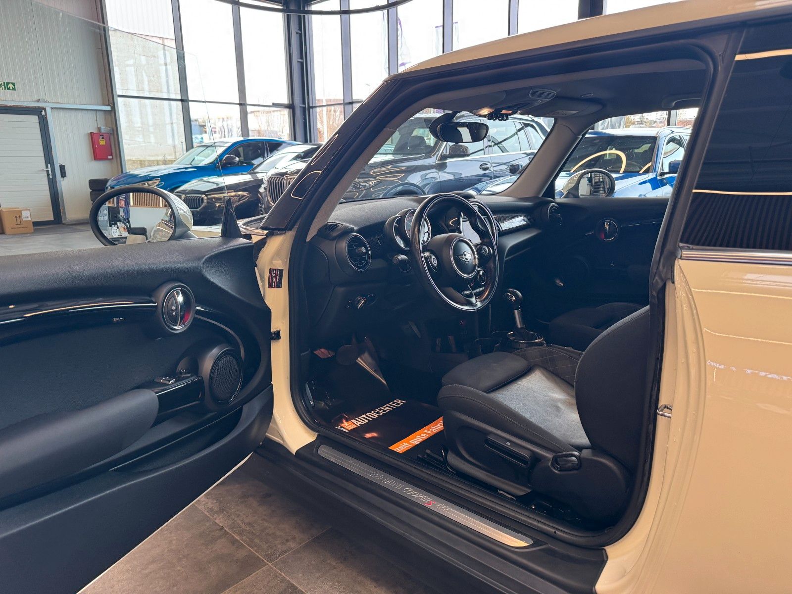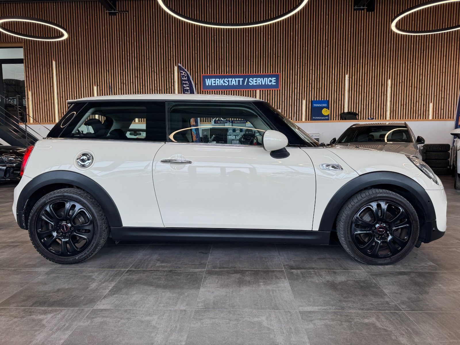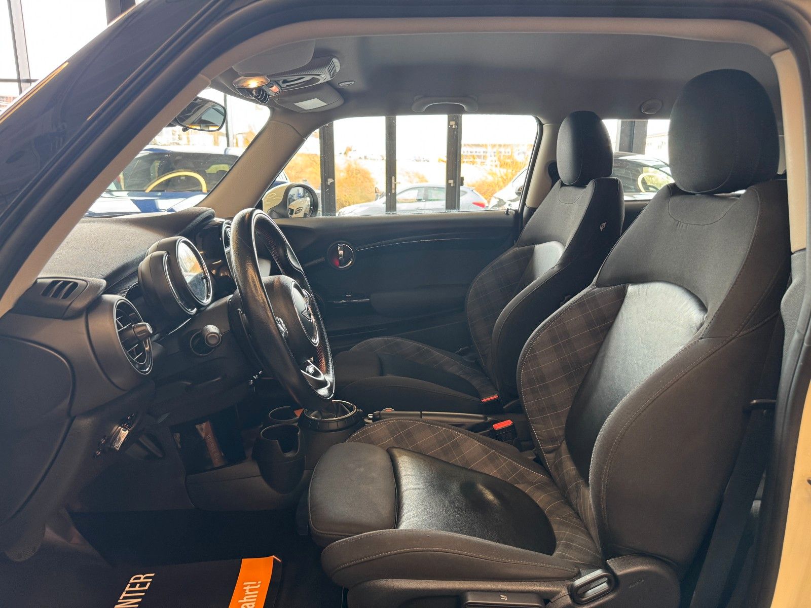 Audiosystem MINI Visual Boost (inkl. LC-Display), Ausstattungs-Paket: Chili, Fahrassistenz-System: Park-Assistent, Fzg. ohne Modell-Schriftzug, LM-Felgen 7x17 (Cosmos Spoke, Schwarz), MINI Connected (Schnittstelle), Park-Distance-Control (PDC) vorn und hinten