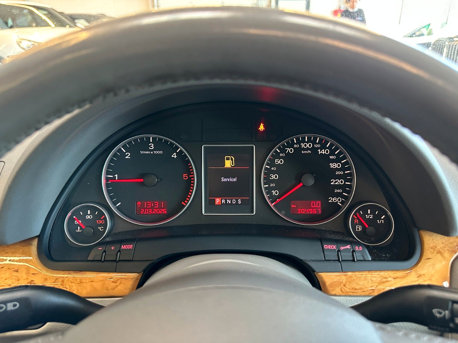 Außenspiegel elektr. verstell- und heizbar, beide, Business-Paket Comfort, Business-Paket Plus, CD-Wechsler im Handschuhfach, Dachhimmel Stoff, schwarz, Design-Paket Plus, Einparkhilfe vorn und hinten (APS), Innenausstattung: Dekoreinlagen Holz Birkemaser Beige, Innenspiegel mit Abblendautomatik, LM-Felgen 7,5x17 (16-Speichen), Multi-Media-Interface MMI Navigation Plus, Reserverad als Notrad, Schiebedach elektr. mit Solarzellen und Vorwähl-Automatik, Sitzbezug / Polsterung: Alcantara / Leder Perlnappa, Sportsitze, Vorrüstung Mobiltelefon/Handy, in Mittelarmlehne integriert, Xenon-Scheinwerfer Plus (Abblend- und Fernlicht)